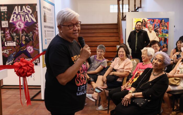Alas ng Bayan generates awareness about the intersections between women, history, memory, climate change, and citizenship. The exhibit is composed of five paintings depicting individually the heroes Gregoria “Oriang” de Jesus, Apolonia Catra, Remedios “Kumander Liwayway” Gomez-Paraiso, Lorena Barros, and Gloria Capitan. Partner organizations, interested groups, and individuals are encouraged to add more women to the roster of heroes.